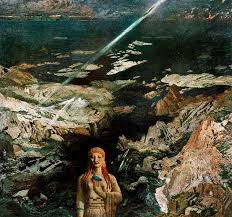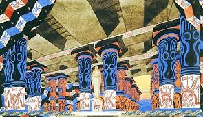 Terror Antiquus raffigura la distruzione di Atlantide, la Porta dei Leoni di Micene, Tirinto e l’Acropoli di Atene, con Kore che presiede a simboleggiare il caos e l’inevitabilità della forza umana; 1908, olio su tela, 250 × 270 cm, Museo Russo.