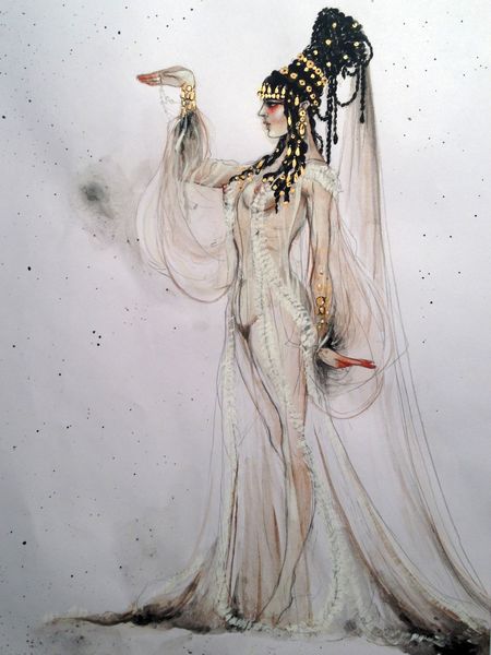 Per La Pisanelle où la Mort parfumée di Gabriele D’Annunzio; 1913, matita, acquerello e gouache su cartone, 24 × 39 cm, collezione privata.