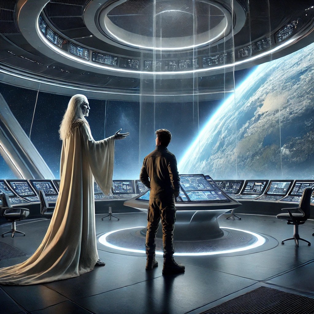 Una delle caratteristiche sorprendenti dell’astronave è l’assenza di comandi elettronici visibili: tutta la tecnologia è nascosta, e le operazioni sono gestite attraverso una connessione mentale tra gli esseri a bordo e i sistemi della nave. Michael, affascinato, esplora la navicella mentre l’equipaggio, composto da esseri di grande bellezza e serenità, lo accoglie e gli illustra i principi della loro tecnologia avanzata.