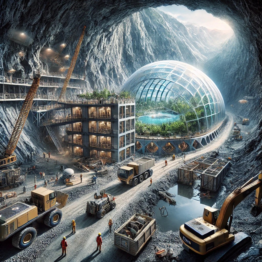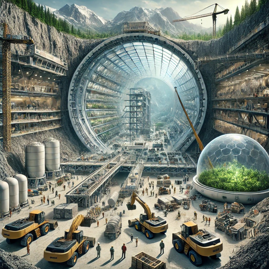 The construction of the ark is one of the central themes of the novel. It is designed as a gigantic structure carved out of the mountain, intended to offer refuge and salvation to its inhabitants. The preparatory work proves to be extremely complex, both from a technical and human point of view. The project is led by Michael and Sir Humphrey, who coordinate a group of technicians, miners and workers from different parts of the world. The mountain is being drilled through using advanced machinery, including huge cutters capable of digging tunnels as deep as.