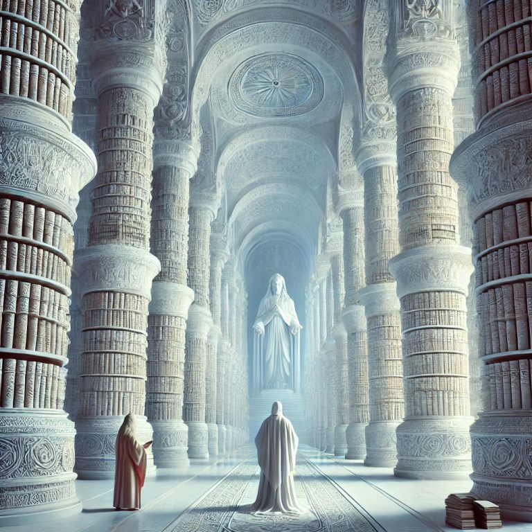The discovery of the secret library Odysseus brings Nausikaa to a majestic building, the ‘White Library’, where the most important texts of humanity are kept. Here, she learns that knowledge is not only scientific, but also intuitive and symbolic. The library is managed by a group of wise men and women who preserve ancient knowledge and prepare humanity for the next stage of evolution.