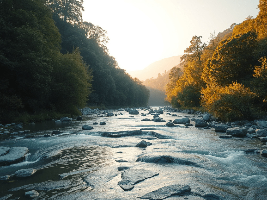 Ho fatto fare all’intelligenza artificiale una copertina per questo post e ha creato questa bella immagine del fiume che scorre in una natura idilliaca. Mi ricorda tanto il fiume accanto al monastero di Samyeling in Scozia dove abbiamo passato alcuni periodi tanti anni fa. Proprio una misura originaria !