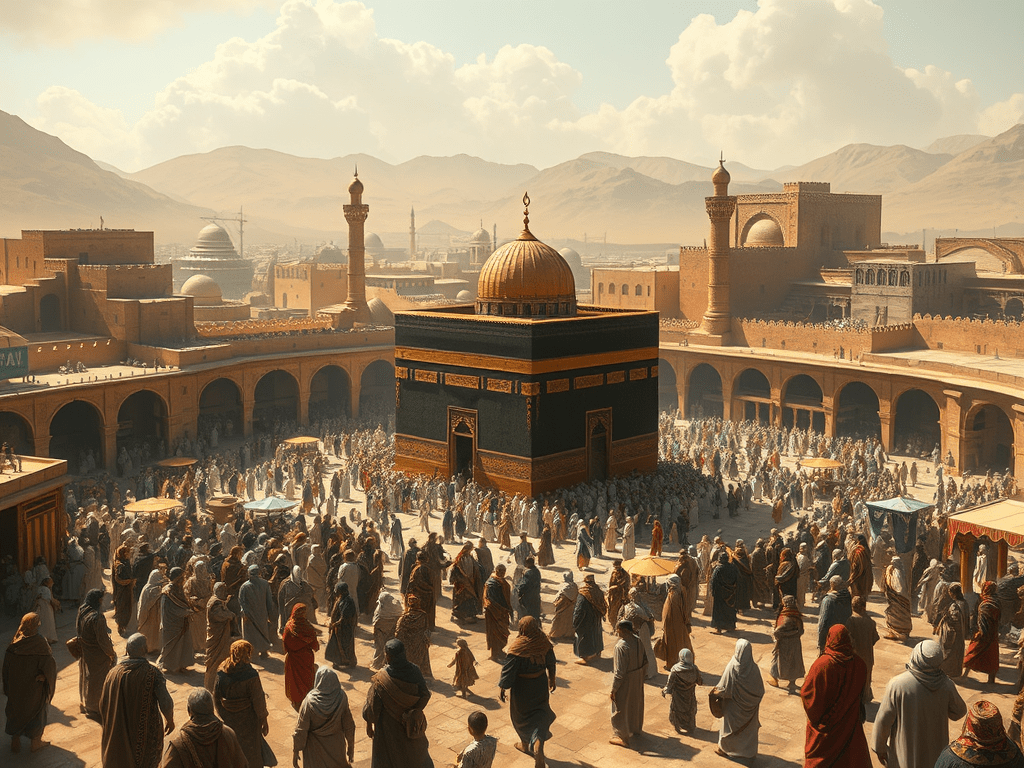 Nel VI–VII secolo d.C., prima della predicazione di Maometto, la città di La Mecca era un centro religioso e commerciale dell’Arabia occidentale.